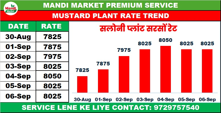 सरसों भाव ₹ 6775 तेजी ₹ 25