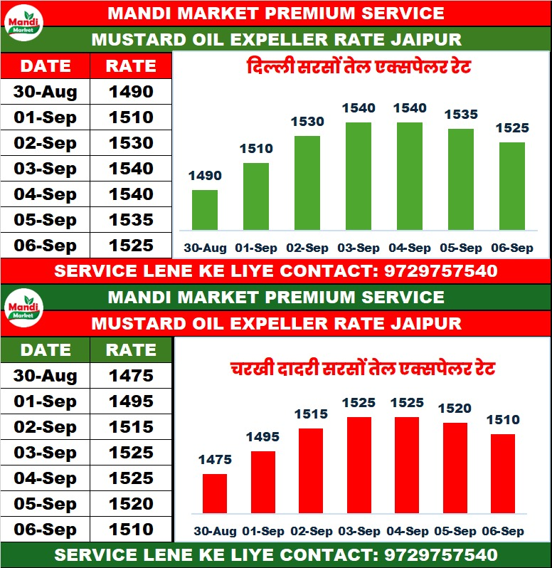 सरसों तेल एक्सपेलर भाव ₹ 1525 मंदी ₹ 10