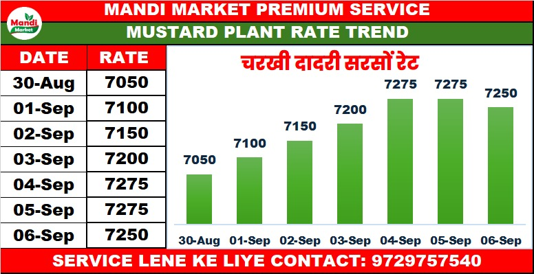 सरसों भाव ₹ 7200/7225 मंदी ₹ 25
