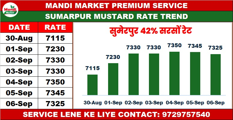 42% कंडीशन सरसों भाव ₹ 7300 स्थिर