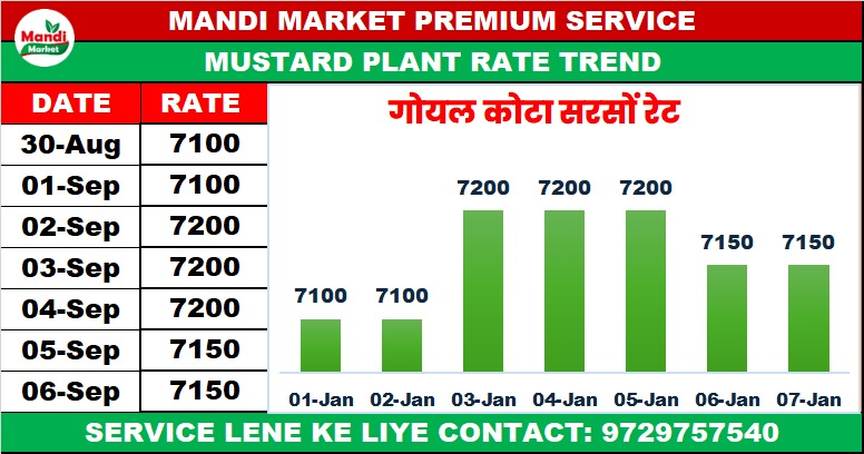 सरसों भाव ₹ 7100 मंदी ₹ 50