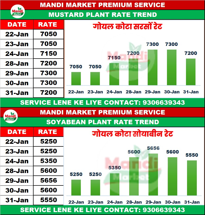 गोयल कोटा (GOYAL KOTA) सरसों भाव ₹ 7200 मंदी ₹ 100