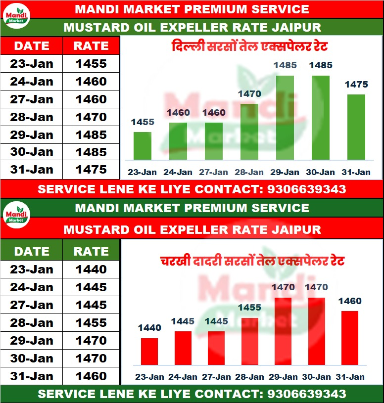 सरसों तेल एक्सपेलर भाव ₹ 1460 मंदी 10