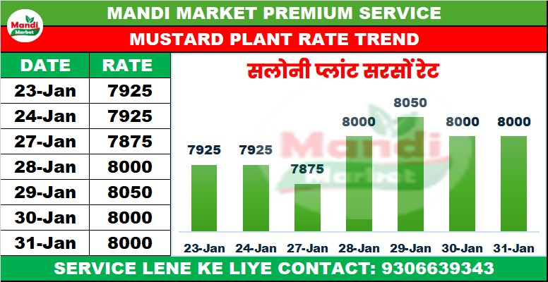 सरसों भाव ₹ 6900 मंदी 80