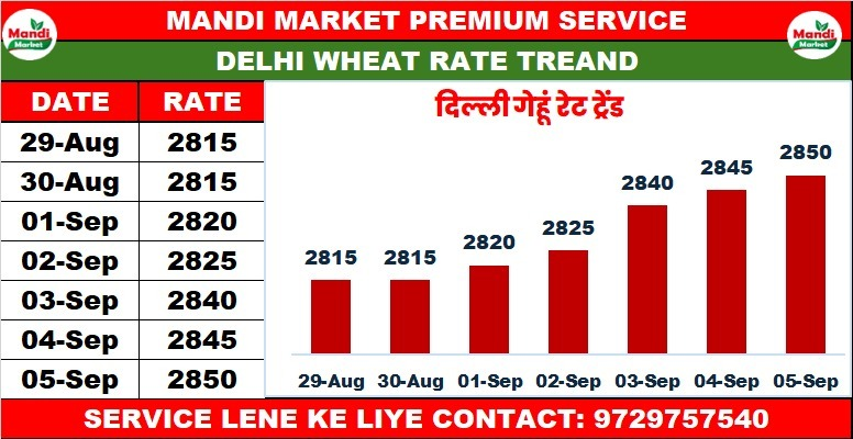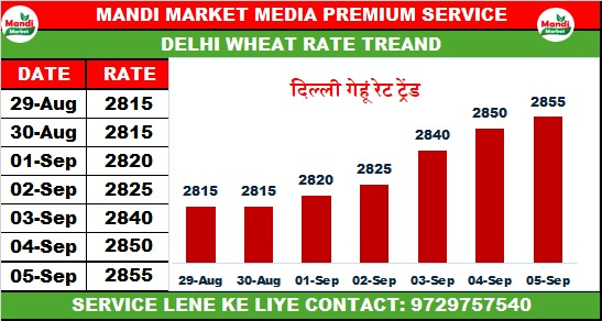 एमपी लाइन गेहूं का भाव ₹ 2850/2855 तेजी 5