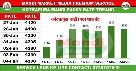 धान 1401 कंबाइन भाव ₹ 4265/4300