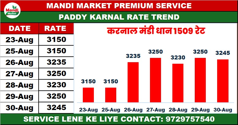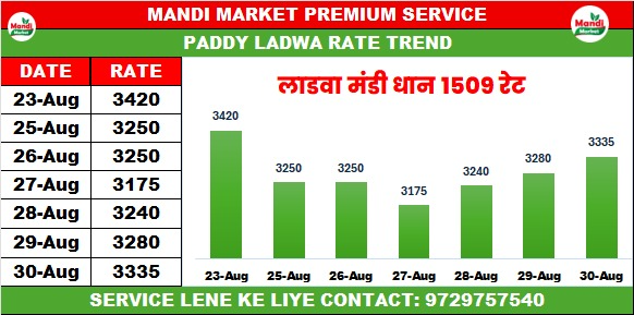 धान 1509 भाव ₹ 2950/3102 मंदी ₹ 55