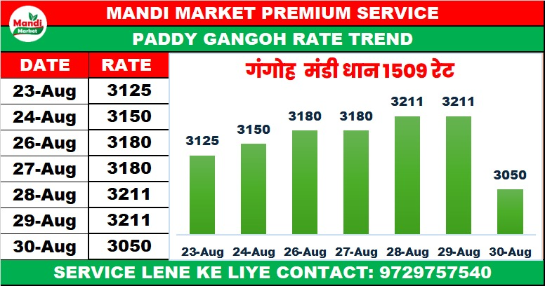 धान 1509 कंबाइन भाव ₹ 2700/3050