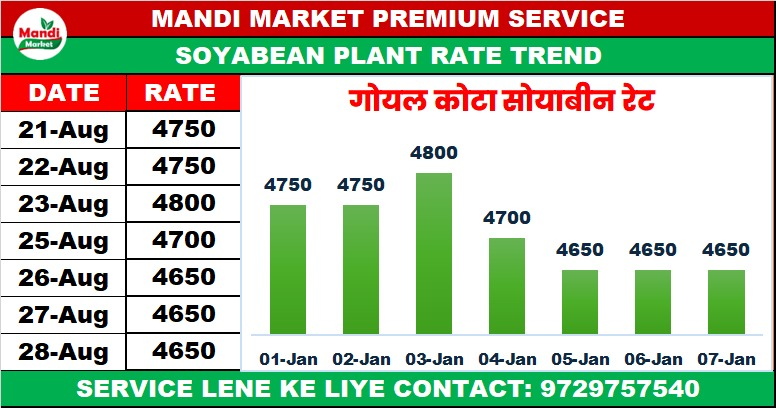 सोयाबीन (SOYABEAN) भाव ₹ 4650 स्थिर
