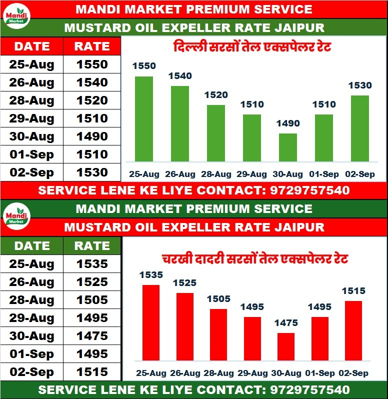 सरसों तेल (EXP OIL) भाव ₹ 1530 तेजी ₹ 20