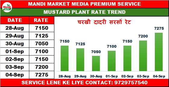सरसों भाव ₹ 7200 तेजी ₹ 25