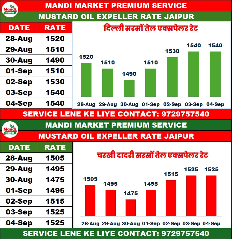 सरसों तेल एक्सपेलर भाव ₹ 1540 स्थिर