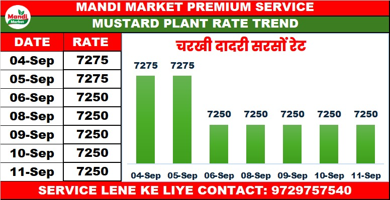 सरसों भाव ₹ 7250/7275 तेजी ₹ 25