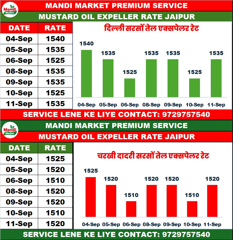 सरसों तेल एक्सपेलर भाव ₹ 1535 तेजी ₹ 10
