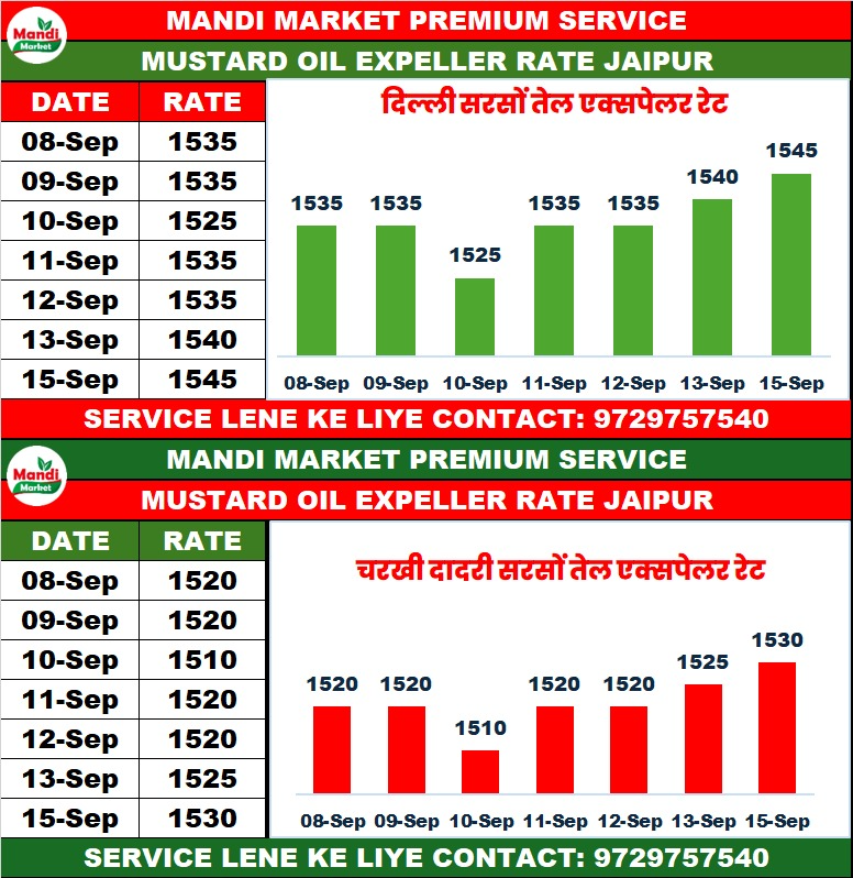 सरसों तेल एक्सपेलर भाव ₹ 1545 तेजी ₹ 5