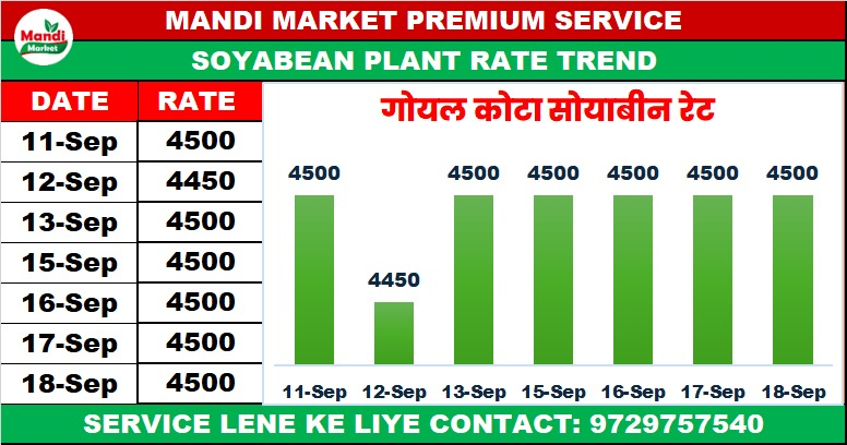 सन स्टार सोया भाव ₹ 4500 स्थिर