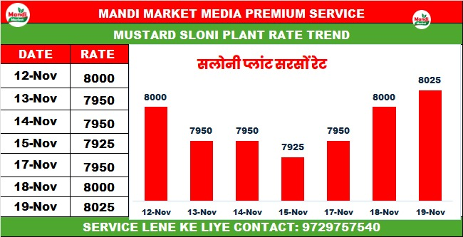 सरसों एमपी लाइन भाव ₹ 7150 से ₹ 7400 तेजी ₹ 50