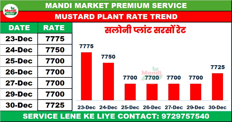 सरसों भाव ₹ 7700 तेजी ₹ 25