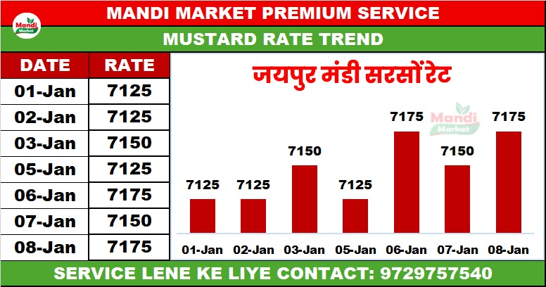 सरसों 42% कंडीशन भाव ₹ 7180/7190 तेजी 30