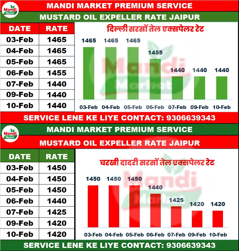 सरसों तेल एक्सपेलर भाव ₹ 1440/1450 तेजी 10