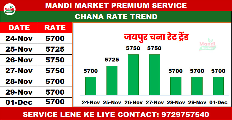 चना भाव ₹ 5300/5350 तेजी ₹ 100