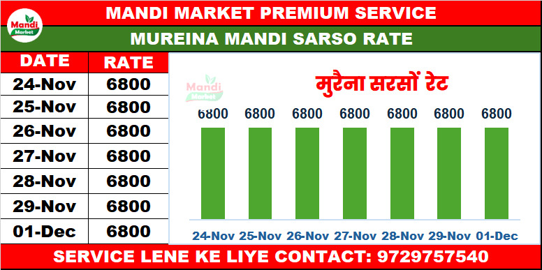 श्योपुर सरसों भाव ₹ 6800/6825 तेजी ₹ 65