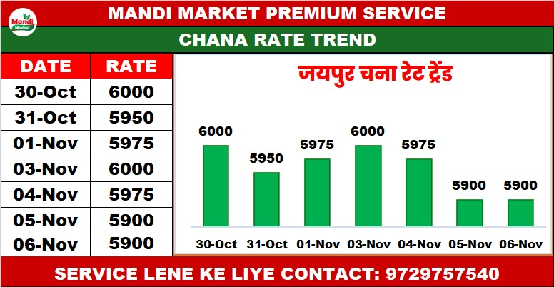 चना कर्नूल लाइन भाव ₹ 5875 से ₹ 5900 मंदी ₹ 50