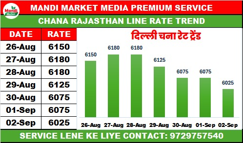चना (CHANA) भाव ₹ 5550/5575 मंदी ₹ 25
