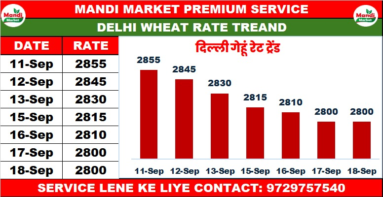 गेहूं मिल क्वॉलिटी भाव ₹ 2550 मंदी ₹ 30