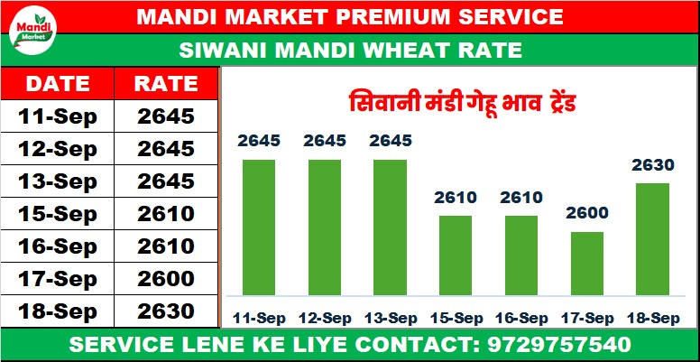 गेहूं मिल क्वालिटी भाव ₹ 2600 मंदी ₹ 50