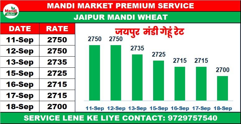 गेहूं राजस्थान भाव ₹ 3030/3080 मंदी ₹ 20
