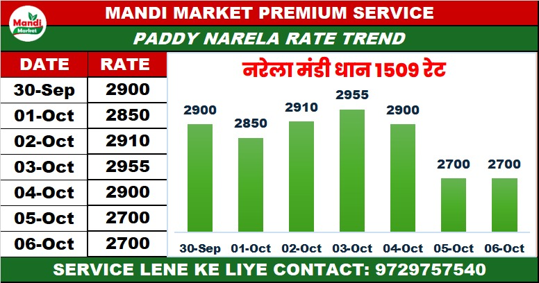 धान 1509 भाव ₹ 2700/2900 मंदी 50