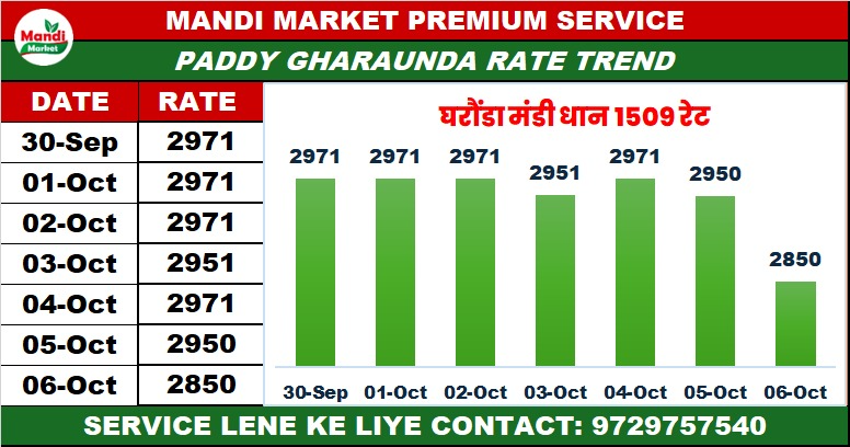 धान 1509 हाथ भाव ₹2901 मंदी 50