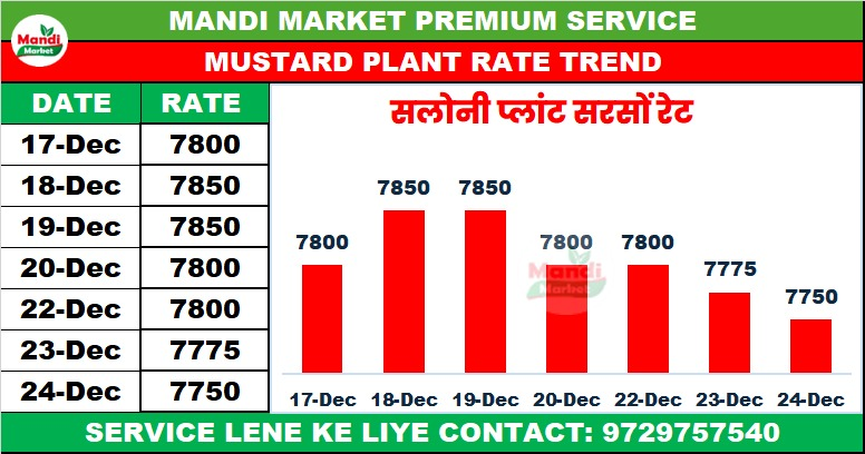दिग्नेर आगरा सरसों भाव ₹ 7750 मंदी ₹ 25