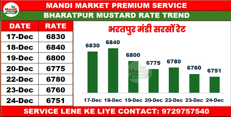सरसों भाव ₹ 6751 मंदी ₹ 9