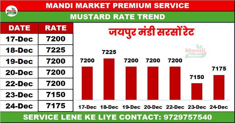 सरसों भाव ₹ 7150/7175 तेजी ₹ 25