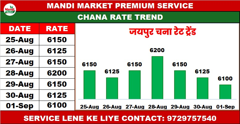 चना (CHANA) भाव ₹ 6100 मंदी ₹ 25
