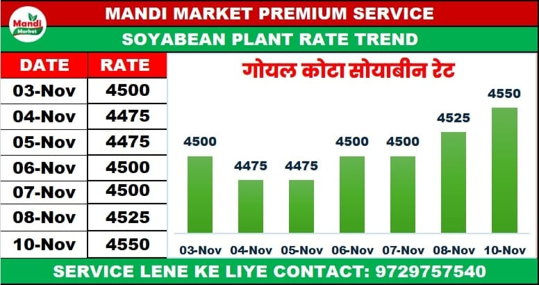 सोयाबीन (SOYBEAN) भाव ₹ 4550 तेजी ₹ 25