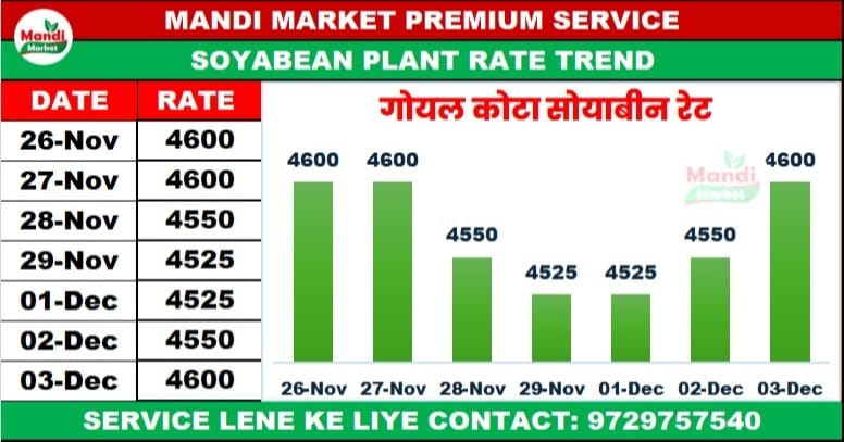 सोयाबीन भाव ₹ 4550/4550 तेजी ₹ 100