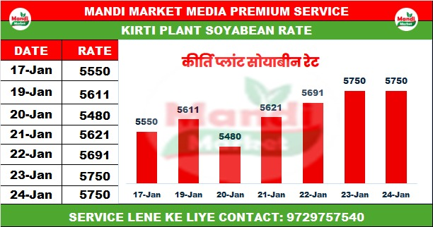 SNEHA (स्नेहा) सोयाबीन भाव ₹ 5650 तेजी ₹ 25 ↑