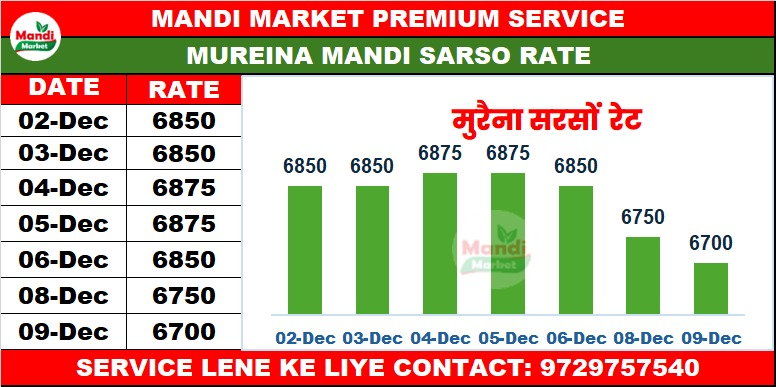 सरसों 42% कंडीशन भाव ₹ 6700 मंदी ₹ 50