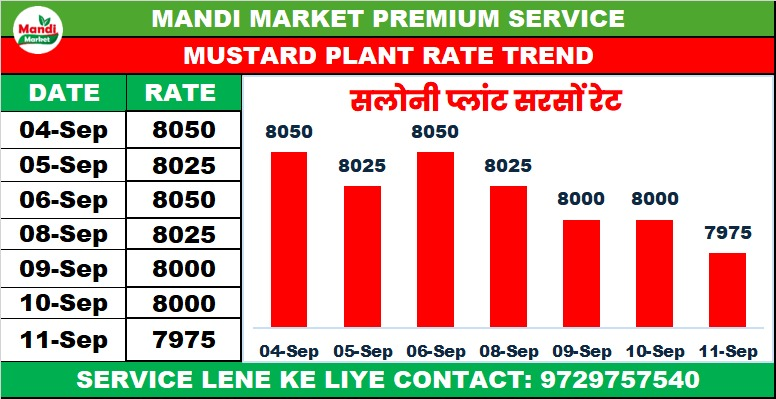सरसों भाव ₹ 6825 तेजी ₹ 50