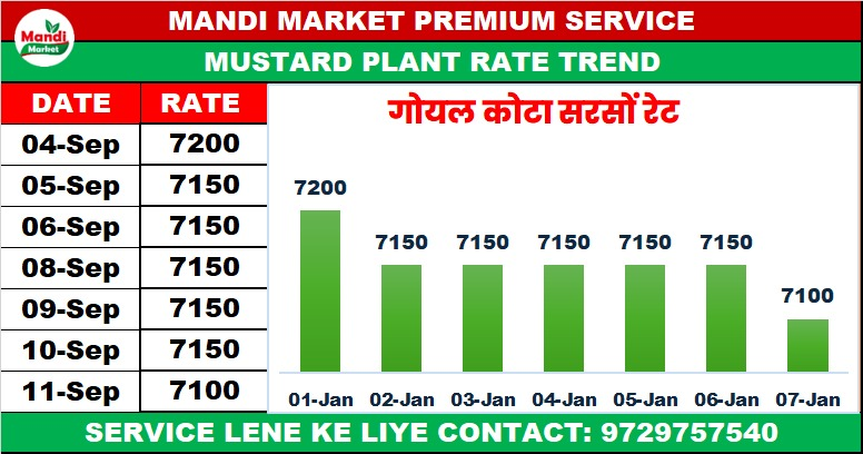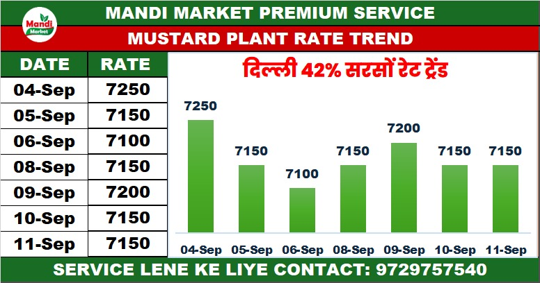 सरसों 42% कंडीशन भाव ₹ 7150 स्थिर