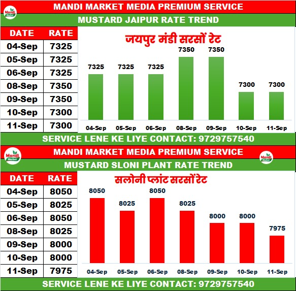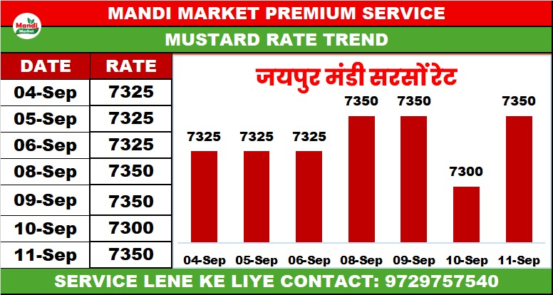 सरसों भाव ₹ 7250/7275 तेजी ₹ 25