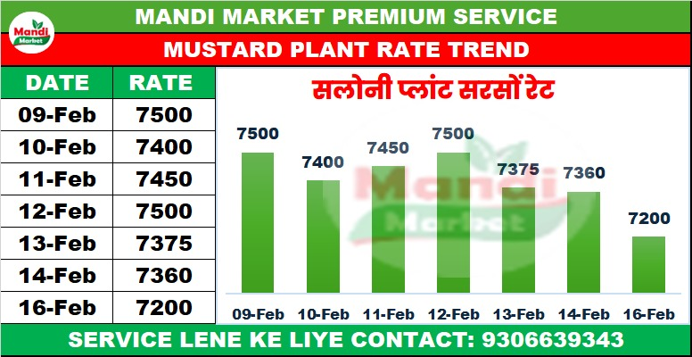 सरसों भाव ₹ 6925 से ₹ 6950 मंदी 50