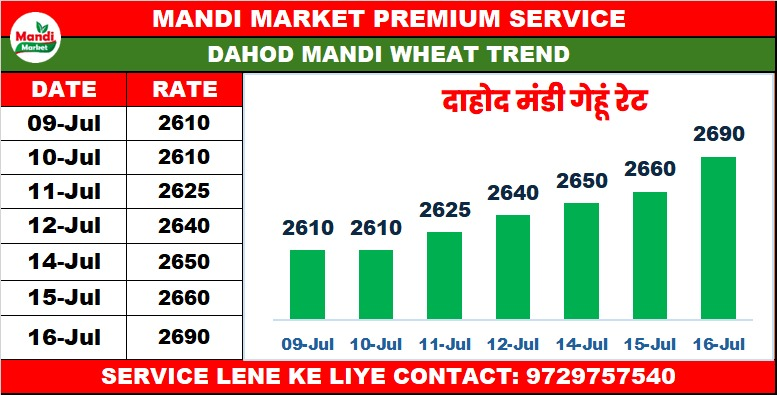 गेहूं (WHEAT) भाव ₹ 2690, स्थिर (MANDI PAID MILL CONDITION WITHOUT CD)