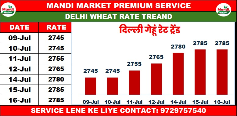 गेहूं मिल क्वालिटी भाव ₹ 2990 तेजी ₹ 10