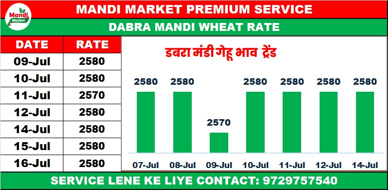 मिल क्वालिटी गेहूं भाव ₹ 2540 मंदी ₹ 10