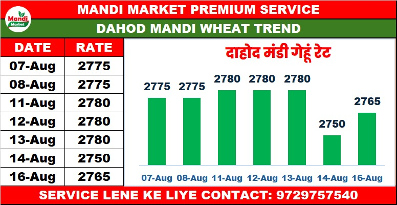 गेहूं बाजार भाव ₹ 2765 तेजी ₹ 15