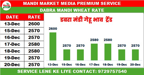 गेहूं बढ़िया राज भाव ₹2570 स्थिर